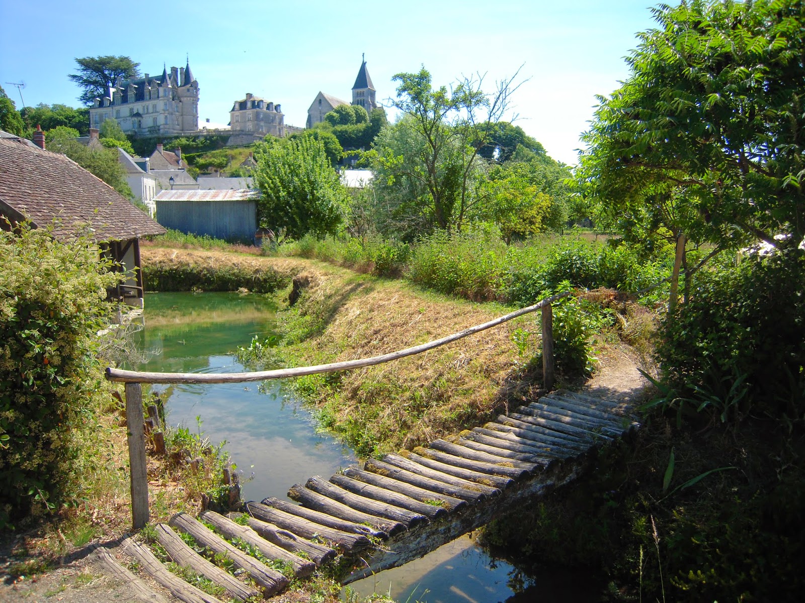 Au lavoir du Mailly, avec le château et l'église en arrière plan